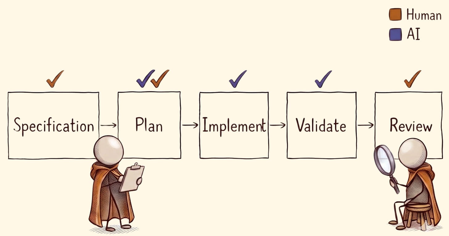 Of course, you might use Claude or ChatGPT to help you refine and ideate on this, but ultimately, the human is the one who needs to specify the goals and outputs required.