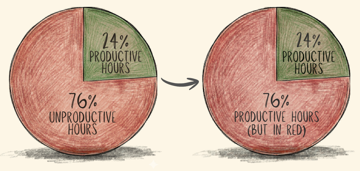 76% of the week is made up of non-working hours. So, if you can find a way to convert some/all of that time into productive hours, it will add up (quickly!)